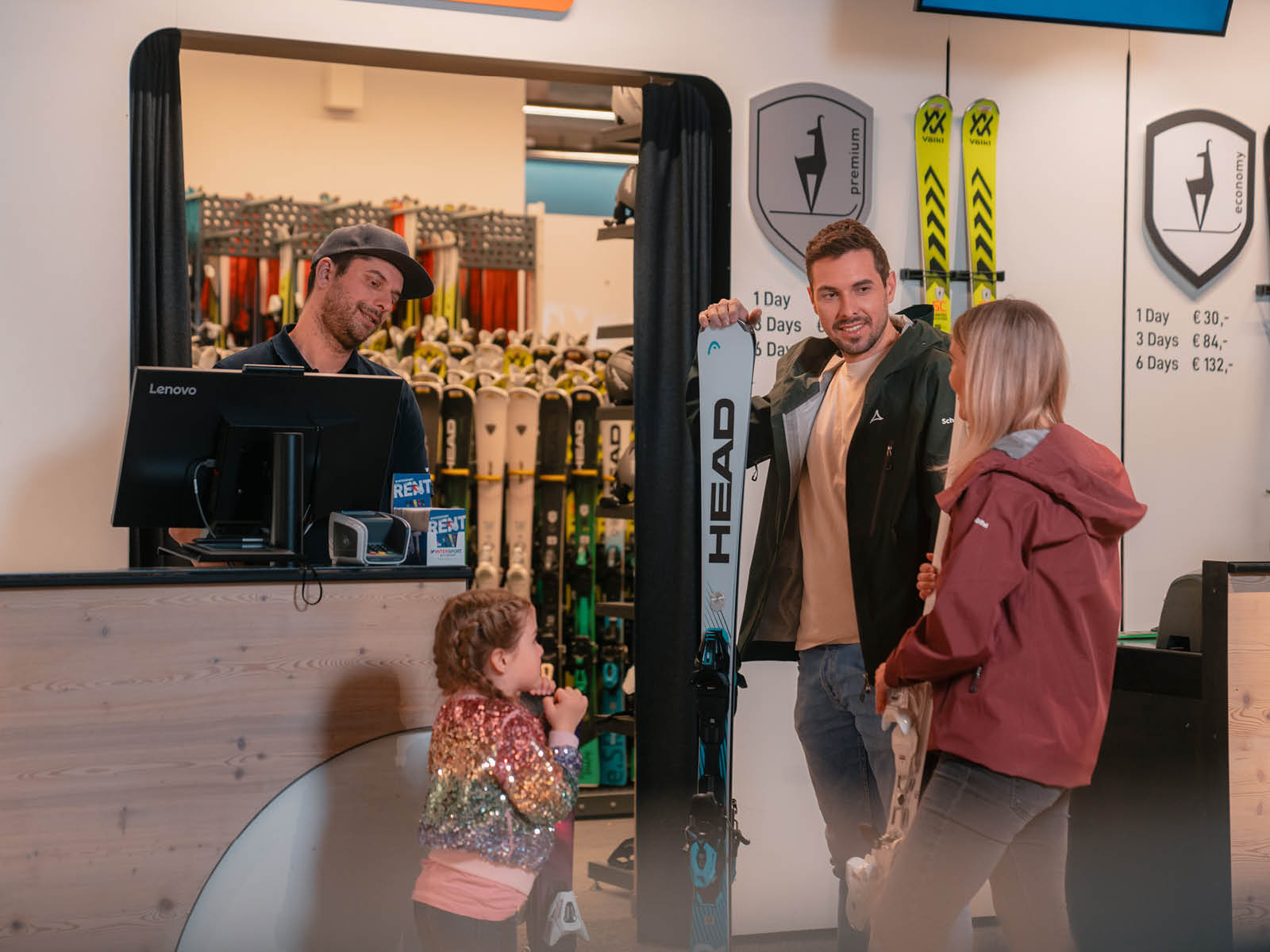 Unser erfahrenes Team sorgt dafür, dass du perfekt gerüstet in deinen Tag im Schnee startest!